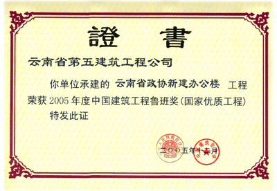 昆明市第一人民醫院外科住院大樓—2005年度“AAA級安全文明標準化誠信工地”